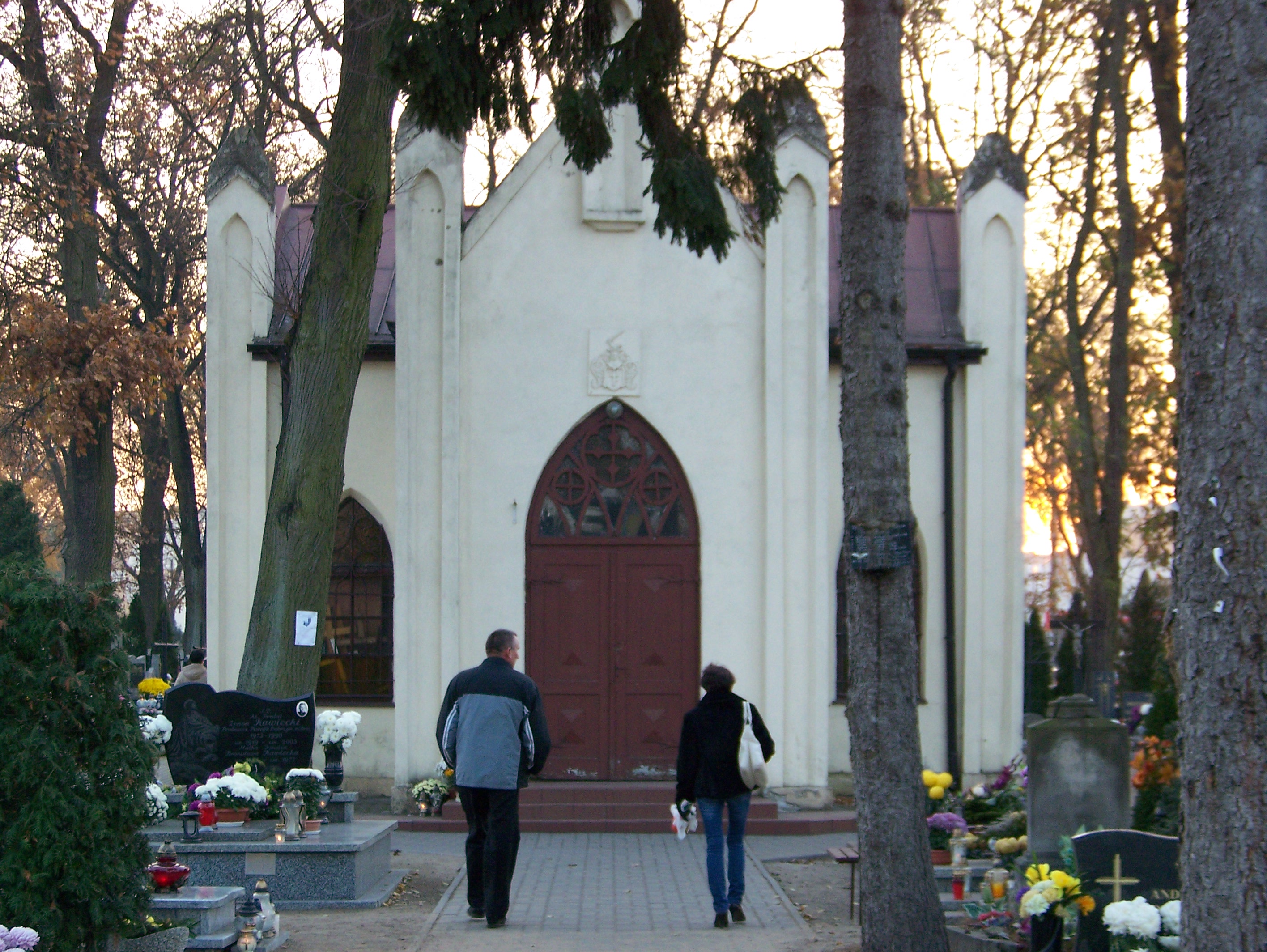Neogotycka kaplica znajduj?ca si? na cmentarzu w Dobrzyniu przy ul. Soko?owskiej wybudowana zosta?a w 1859 roku z inicjatywy urz?dnika komory celnej Aleksandra Ostrowskiego. W 1864 roku kaplic? przebudowano na polecenie Jana Brudnickiego, dziedzica Soko?owa, kaplica zosta?a przej?ta nast?pnie przez rodzin? P?oskich, ktrych herb znajduje si? nad g?wnym wej?ciem do kaplice od 1870 roku (fot.redakcja 2011r.).