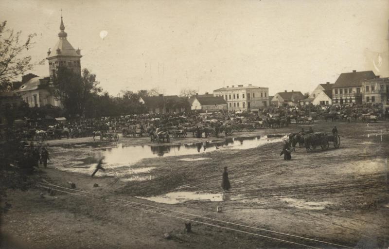 Jarmark w Dobrzyniu n/Drw?c? - obecnie w tym miejscu rynek miasta - w tle ko?ci? parafialny.